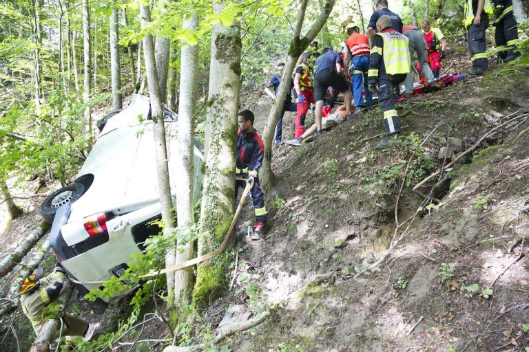 Ein schwerer Unfall hat sich gestern Vormittag auf der Laternserstraße ereignet. Wie die Polizei mitteilte, kam der 64-jährige Lenker eines VW-Busses aus dem Bezirk Dornbirn in einer Linkskurve von der Fahrbahn ab und stürzte 100 Meter über steiles Gelände ab, wobei sich d