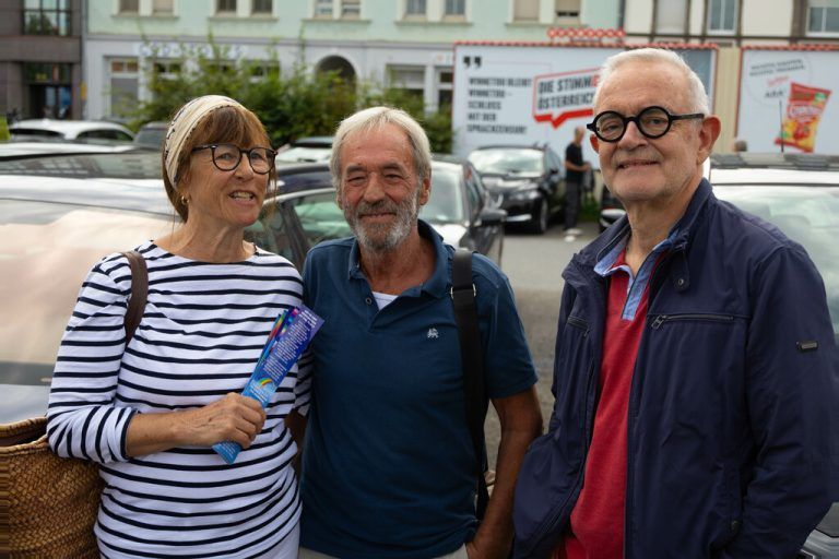 Eine Kundgebung gegen Hass und Gewalt reagiert am Dienstag in Bregenz auf die erneut zerstörte KUB-Billboards.