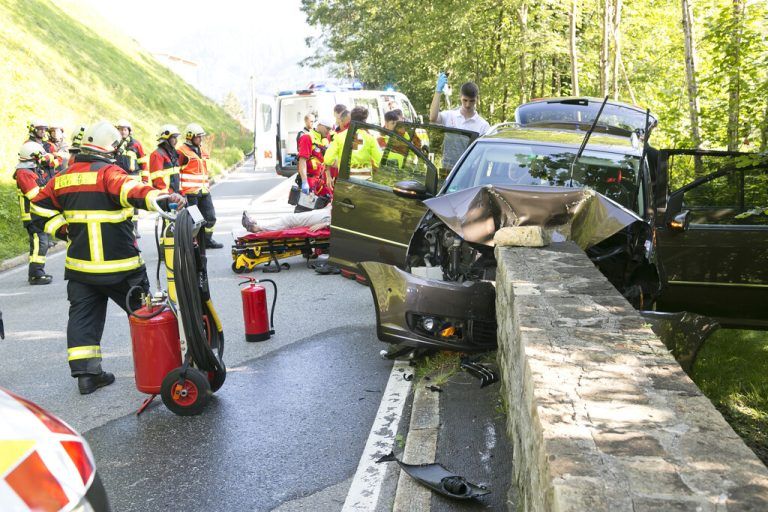 Vier Verletzte forderte ein Unfall am Dienstag gegen 17.15 Uhr in Laterns. Ein Deutscher (68) fuhr auf der L 51 Richtung Batschuns, als er aus unbekannter Ursache nach links von der Fahrbahn abkam und ungebremst frontal gegen den Maueranfang einer Fahrbahnbrücke prallt