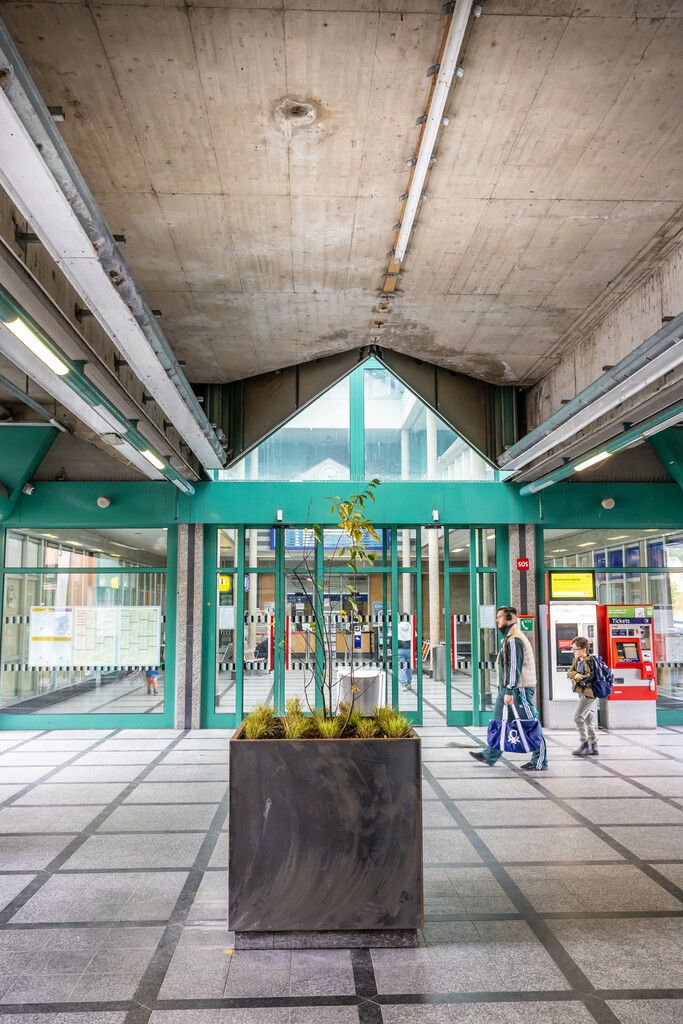 Der legendäre blaue Eimer am Bregenzer Bahnhof ist Geschichte. An der undichten Stelle wurde ein Blumentopf platziert. Der schöne Nebeneffekt: Die Pflanzen werden bei Regen durch die undichte Decke gegossen. Was mit dem „Heiligen Kübel von Bregenz“, wie er bei einem Ein