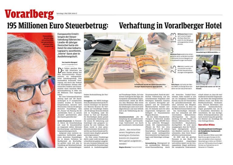 Mutmaßlich kriminelle Vereinigung soll Mehrwertsteuerbetrug in Höhe von 195 Millionen Euro begangen haben – für einen Verdächtigen klickten die Handschellen in Vorarlberg.