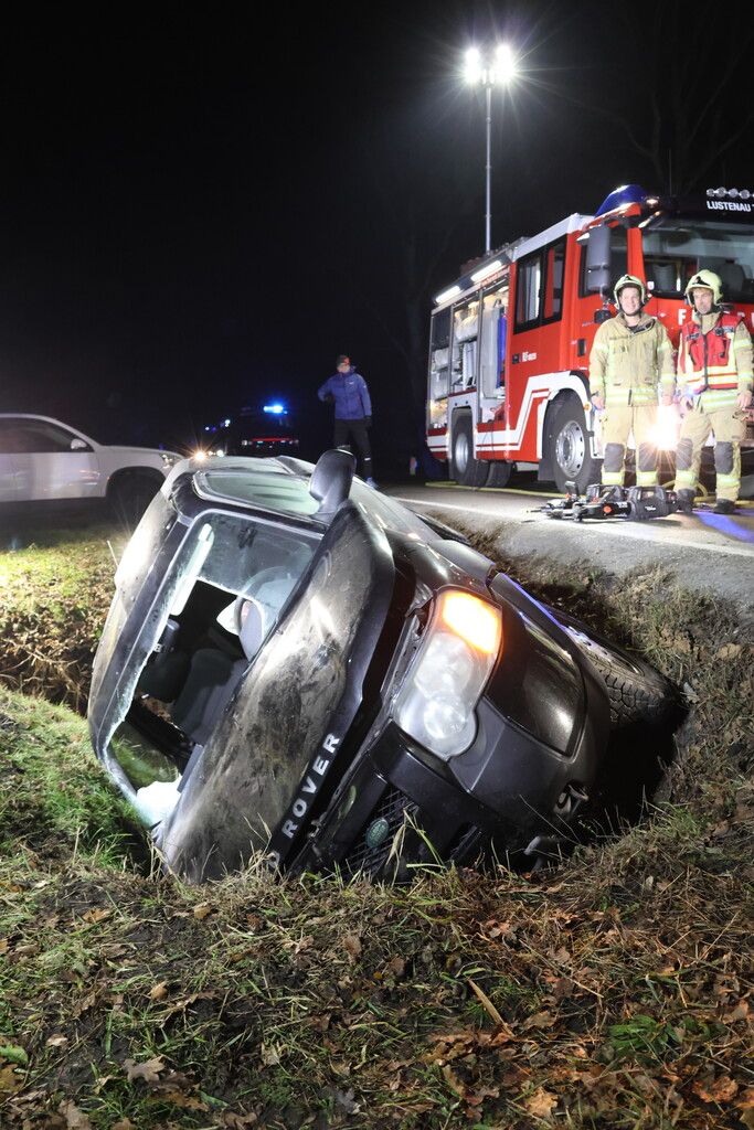 Eine Autofahrerin verunfallte am Mittwoch-abend in der Zellgasse in Lustenau. Ihr Fahrzeug kam seitlich im Graben zu liegen, die Lenkerin wurde eingeschlossen und verletzt. Feuerwehr und Rettung befreiten die Frau, die ins Krankenhaus gebracht wurde. Die Straße war währ