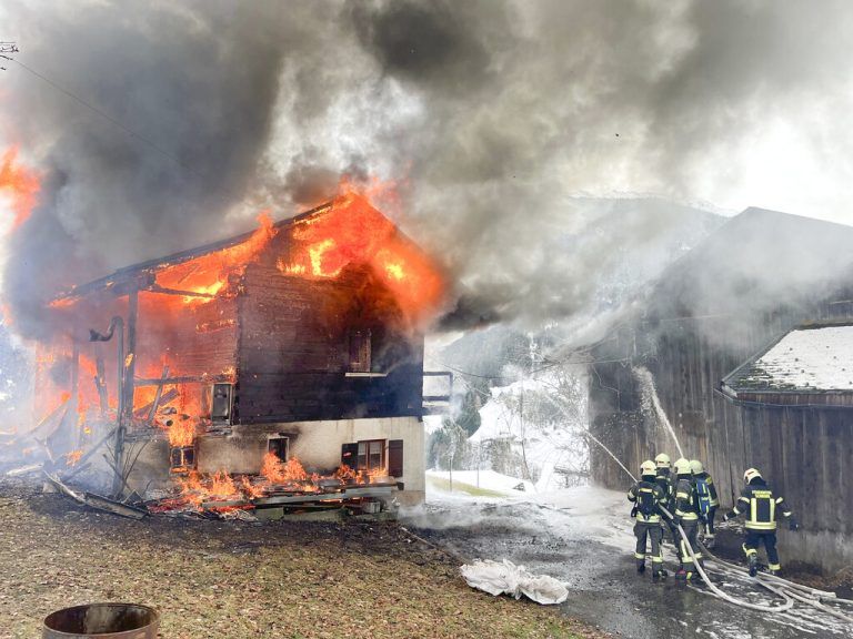 In Bartholomäberg ist gestern Vormittag ein Haus nahezu komplett abgebrannt. Beim Eintreffen der Einsatzkräfte gegen 10.25 Uhr hatte sich das Feuer bereits auf das gesamte Gebäude ausgedehnt. Personen waren zu diesem Zeitpunkt keine mehr im Haus. Nach einem mehrstündigen