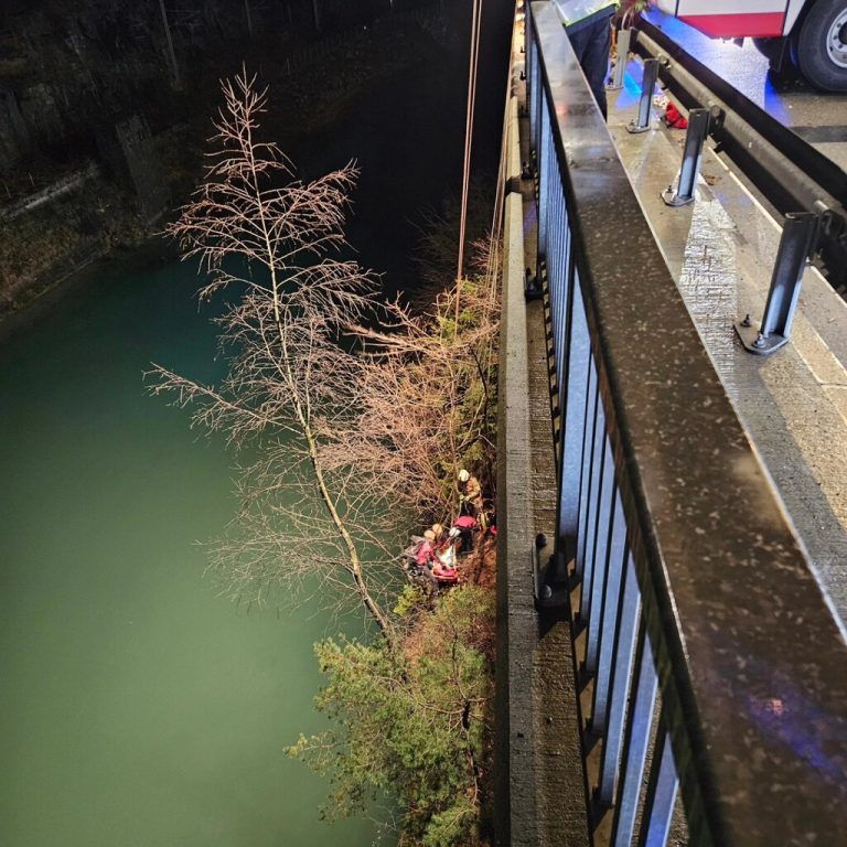 40-jähriger überlebte Zwölf-Meter-Sprung – zuvor war er in einen Verkehrsunfall verwickelt. Ob er den Wagen lenkte, ist noch ungewiss.