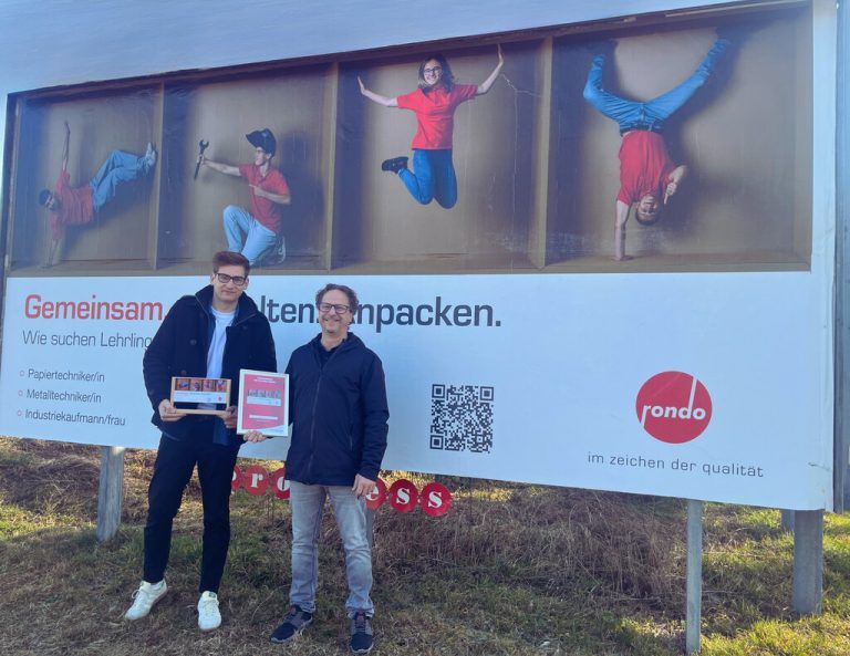 „Gemeinsam. Gestalten. Anpacken.“ Unter diesem Motto setzt die Rondo Ganahl AG ihre aktuelle Lehrlings-Kampagne auf analogen Großflächen um – mit Erfolg. Das Unternehmen sichert sich für seinen Lehrlingsaufruf die Progress Out of Home Trophy im März. Im Bild: Ma