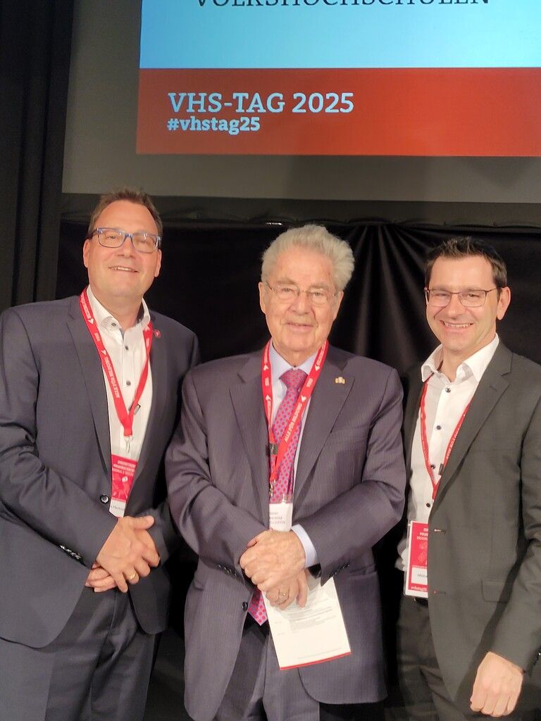 Unlängst wurde in Wien der Vorstand des Verbandes der Österreichischen Volkshochschulen neu gewählt. Als Vorarlberger Vertreter in den Vorstand entsandt wurden Stefan Fischnaller (l., VHS Götzis) und Michael Grabher (VHS Bregenz) – im Bild mit dem Präsidenten der Volkshochschulen, Heinz Fischer