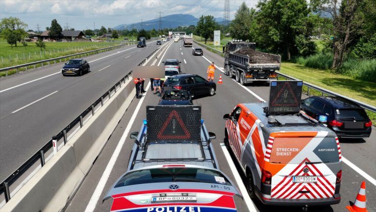 Auf der A14 zwischen Dornbirn-West und Dornbirn-Nord kam es am frühen Freitagnachmittag zu einem Auffahrunfall mit insgesamt vier beteiligten Fahrzeugen. Dabei bremste ein bislang unbekanntes weißes Fahrzeug plötzlich ab. Die vier Fahrzeuge wichen teilweise auf die Normalspur aus. Die 33-jährig