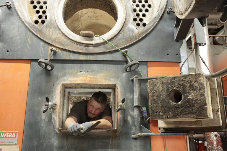 Kurt Bus von der Harder Mawera GmbH erneuert im Biomasse-Fernwärmeheizwerk Hohenems die Ausmauerung der Kessel.