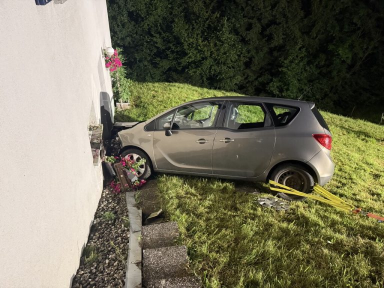 Ein 76-jähriger Lenker kam am Dienstagabend in Müselbach von der Straße ab, fuhr einen Abhang hinunter und prallte frontal gegen eine Hausmauer. Der Mann war erheblich alkoholisiert und wurde zur Abklärung ins Krankenhaus gebracht. Sein Beifahrer flüchtete zu Fuß von der Unfallstelle. Feuerweh