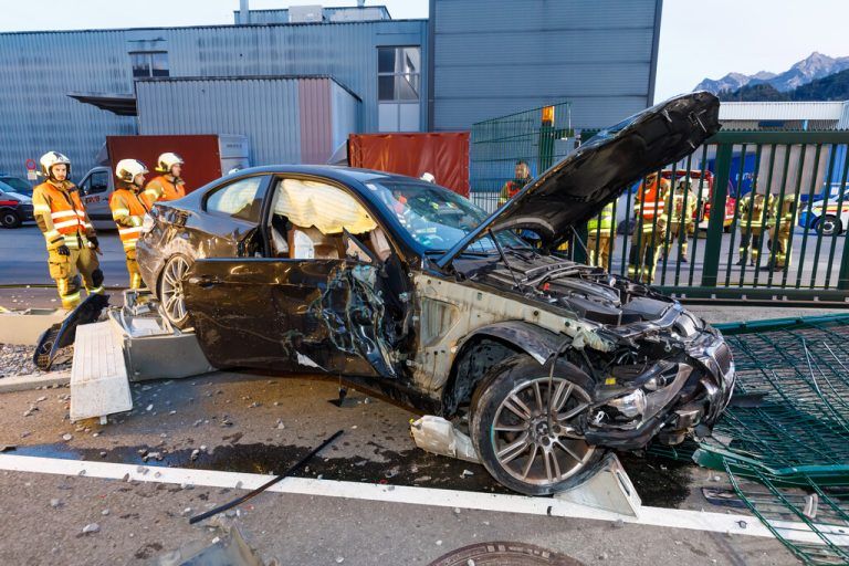 In Nüziders ereignete sich am Samstag kurz nach 19.30 Uhr ein Verkehrsunfall. Nach ersten Angaben vom Unfallort verlor ein 19-jähriger Lenker aus Bludenz vermutlich wegen überhöhter Geschwindigkeit auf Höhe der Firma Rauch in einer Kurve die Kontrolle über das Fahrzeug, krachte seitlich gegen e