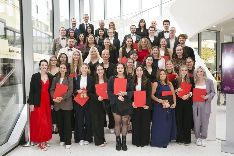 Im Montforthaus Feldkirch nahmen 42 Absolventen und Absolventinnen der Pflegeschule Vorarlberg ihre Diplome entgegen. 37 schlossen den Diplomlehrgang 2022 erfolgreich ab, fünf absolvierten die Sonderausbildung Pflege im OP-Bereich.