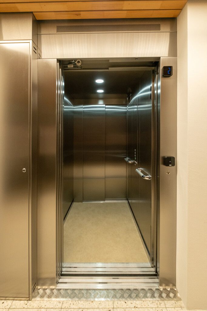 Die Sporthalle Herrenried in Hohenems ist barrierefrei: Mit einem rollstuhlgerechten Lift können nun vom Erdgeschoss sowohl das Sporthallenniveau, das erste Obergeschoss als auch der Zuschauerbereich im zweiten Obergeschoss ohne Stufen erreicht werden.⇒Stadt Hohenems