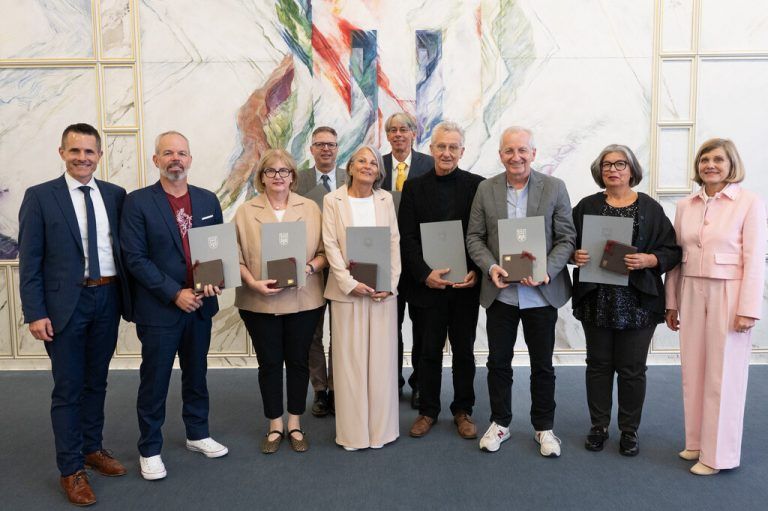 Acht engagierte Pädagoginnen und Pädagogen wurden am Freitag von Bildungslandesrätin Barbara Schöbi-Fink und Bildungsdirektor Heiko Richter im Landhaus als Oberstudienräte, Oberschulräte bzw. Schulräte ausgezeichnet.