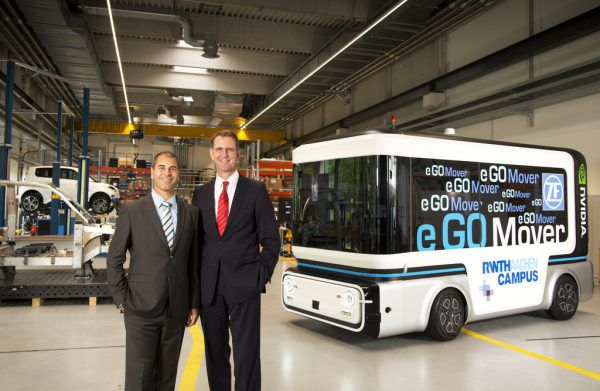 Ein autonomer „People und Cargo Mover“ soll in einem Joint Venture von ZF Friedrichshafen und der e.GO Mobile AG mit Sitz in Aachen entwickelt, produziert und vertrieben werden. Ein Prototyp des E-Shuttles für den urbanen Raum wurde kürzlich auf dem Campus der Rheinisch-Westfälische